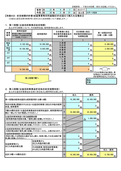 2.別表A(2) 収支相償の計算(収益事業等の利益額の50%を超えて繰り入れる場合)