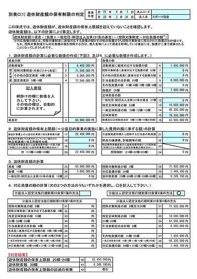別表B(1) 公益目的事業比率の算定総括表 別表C(1) 遊休財産額の保有制限の判定